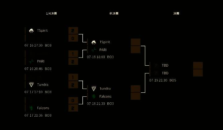 3支突围赛战队(PV、Tundra、Falcons)杀入四强,其中沙特主场战队Falcons更是从突围赛首轮一路逆袭