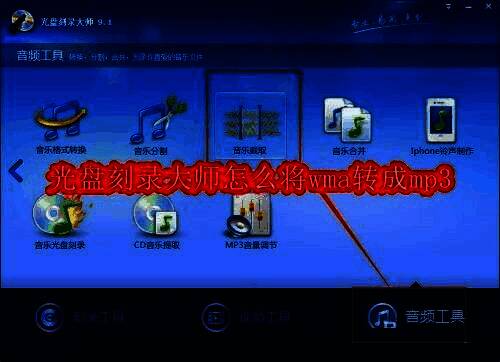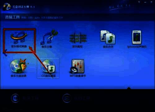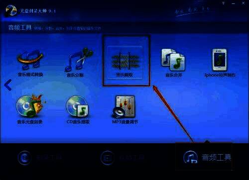 首先,打开光盘刻录大师软件,选择页面中的音频工具(如图所示)。