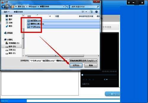找到存放音频文件的文件夹位置,找到需要的视频,然后选择文件点击打开,将文件插入到音频工具中(如图所示)。