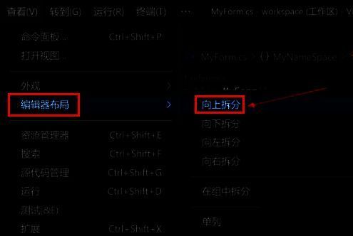 4.最后,在编辑器布局栏目中点击向上拆分选项,并保存设置即可
