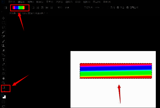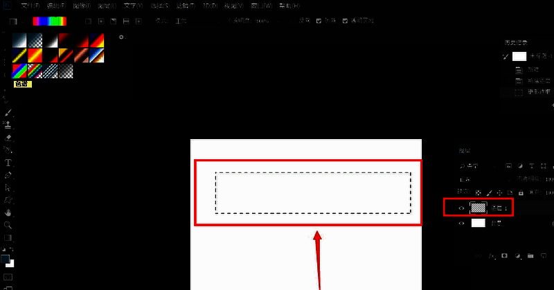 1.首先,新建空白画布后,在图层1中用选区工具画一个矩形选区