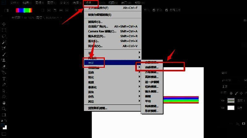 4.随后,在滤镜菜单的模糊一栏中,添加动感模糊效果