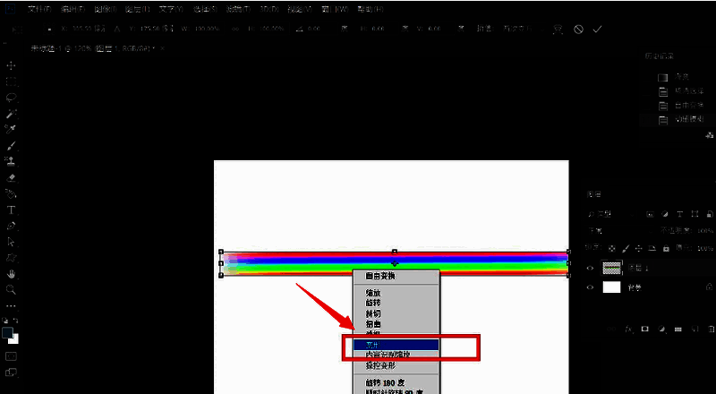 5.最后,选中图形,右键点击变形按钮,拖拽成轨迹线形状即可