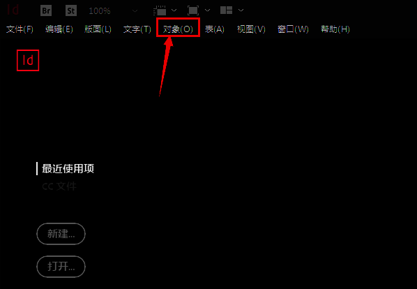 1.首先 ,打开InDesign界面后,点击上方的对象菜单