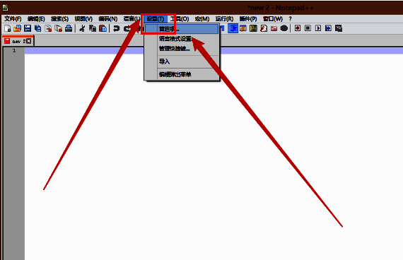 1.首先,打开Notepad++界面后,点击上方设置菜单中的首选项按钮
