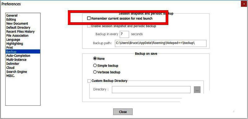原因在于,在Notepad++的默认设置中,如图显示的选项的默认打开勾选的【Remeber current ...】