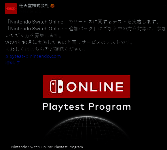 ·新计划Nintendo Switch Online: Playtest Program只针对任天堂SwitchOL的拥有追加包资格的高级用户参与测试,据悉测试玩家届时会使用官方下载的Nintendo Switch 2/Nintendo Switch专用软件测试,具体功能内容暂未透露,敬请期待后续消息。