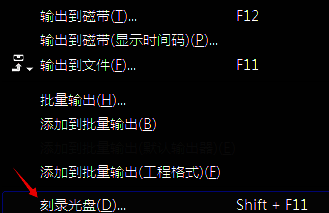 3、这时候打开文件下拉菜单,就会发现,EDIUS刻录光盘是激活状态,可以点击的。