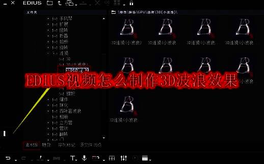 第一步,打开EDIUS软件界面后,先在素材库中导出3d小波浪特效
