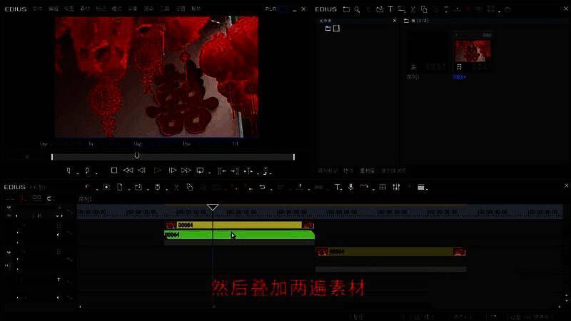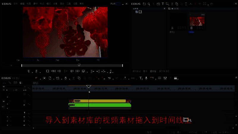 接下来就是将视频素材导入到EDIUS素材库中,然后将视频素材拖入到时间线上。