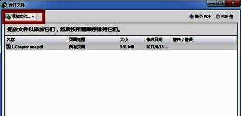 2.我们打开软件,导入一个PDF文件,然后点击软件中的合并按钮,然后选择合并文件到单个PDF。