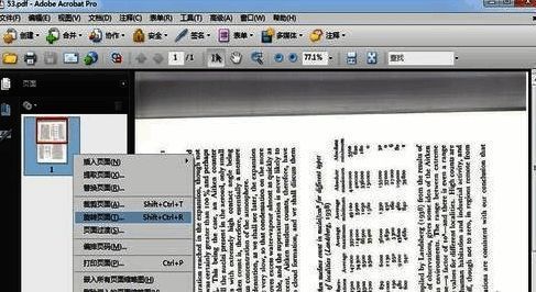 4.然后我们在页面素略图上面点击鼠标右键,然后选择里面的旋转页面。