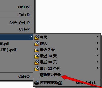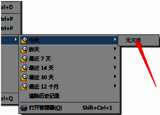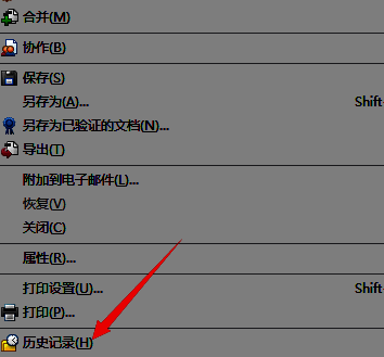 进行点击了文件菜单之后,弹出了下一级菜单选中为 历史记录 的选项。
