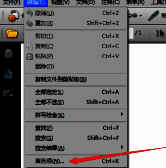 点击了编辑菜单之后,弹出了下拉菜单选中为 首选项 的选项。