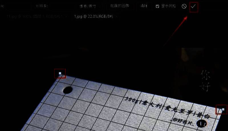 接着,选择完剪裁区域后,点击属性栏右上角的勾号键,即可完成对图片的一键校正处理