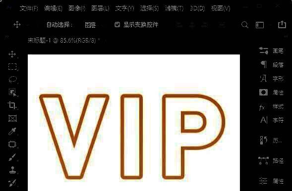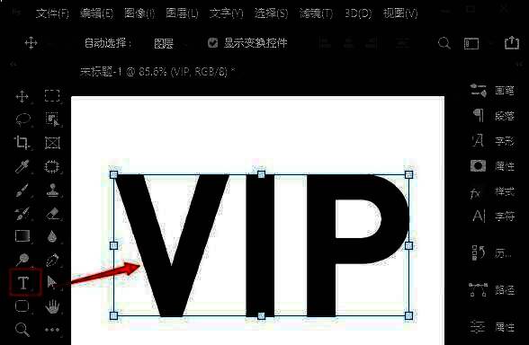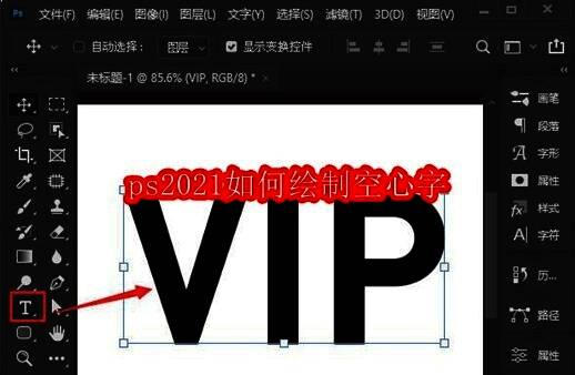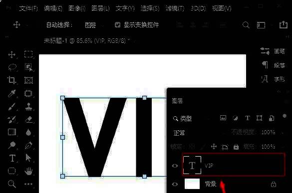 首先,在ps2021中,用【文字工具】输入自己喜欢的英文字母,比如:VIP。