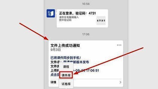 4、在雨课堂电脑版成功上传课件后,雨课堂的公众号将会出现文件上传成功的通知,用户可以直接点击此课件,也可以在“我的”中选择“课件库”查看课件;