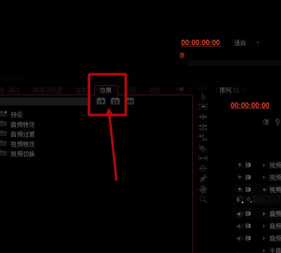 然后我们在左下角的项目面板找到“效果”这个选项,如图所示。