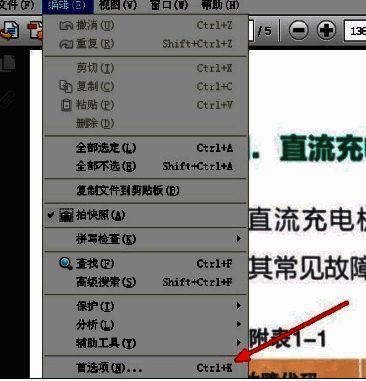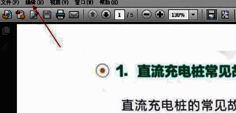 首先,我们在Adobe reader中打开一个文档,然后点击页面左上角菜单栏的编辑,如图所示
