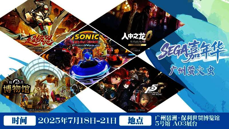 世嘉首度出展华南地区,将携“刺猬索尼克”、“人中之龙”、“女神异闻录”等旗下经典人气IP重磅亮相广州萤火虫漫展。在为期四天的活动中,世嘉将通过精心打造的独立展台,为玩家们带来一场沉浸式的游戏狂欢。