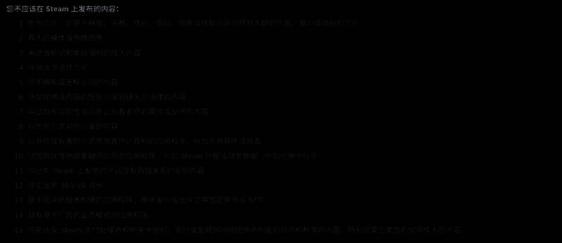 《Steamworks文档》的“不应在 Steam 上发布的内容”部分新增了第 15 项: