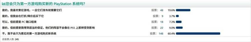 NeoGAF论坛上的一项最新调查清楚地表明,60.4%的参与者表示不会再仅仅为了索尼的独占游戏而购买新的PlayStation主机。虽然这项调查样本过少并不具备代表性,它确实反映了一些情况。