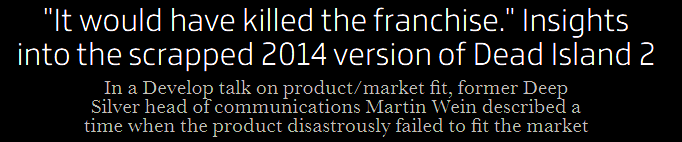 Martin Wein时Deep Silver工作室的前员工,参与了当年《死亡岛2》的开发工作,当时的《死亡岛2》2014年版本还是由YagerDevelopment负责开发的,不过收到的反馈,称和一代相比简直如同两个游戏,既没有意思也没有代入沉浸感,游戏的方向性与玩家们的期待背道而驰。