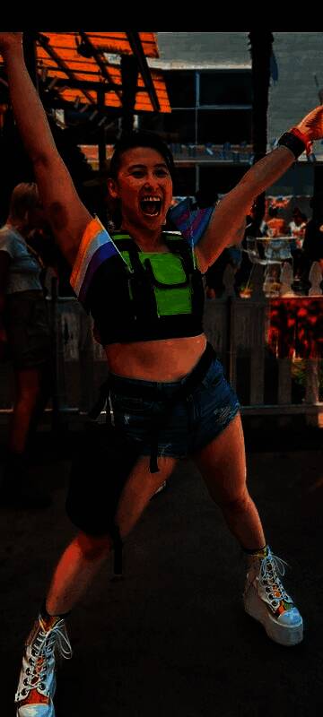 在现实生活中,Erika Ishii是一名狂热的LGBT支持者,网友翻出了她在迪士尼乐园前发疯一般挥舞彩虹旗的视频: