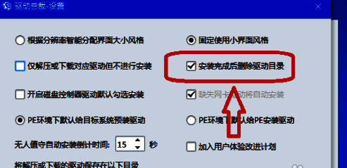 弹出一个页面,勾选“安装驱动完成后删除驱动目录”。