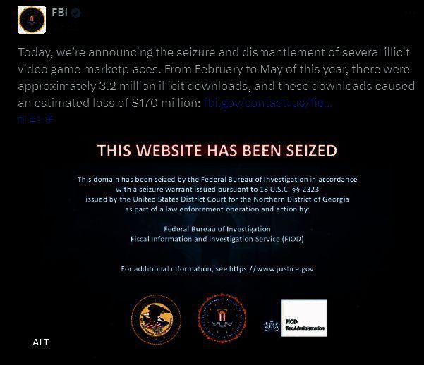 FBI近日重拳出击,严厉打击盗版游戏网站,不久前宣布关停全球最大的Switch盗版网站Nsw2u,之后再次宣布已经查封了七家大型盗版游戏网站,案值高达1.7亿美元。