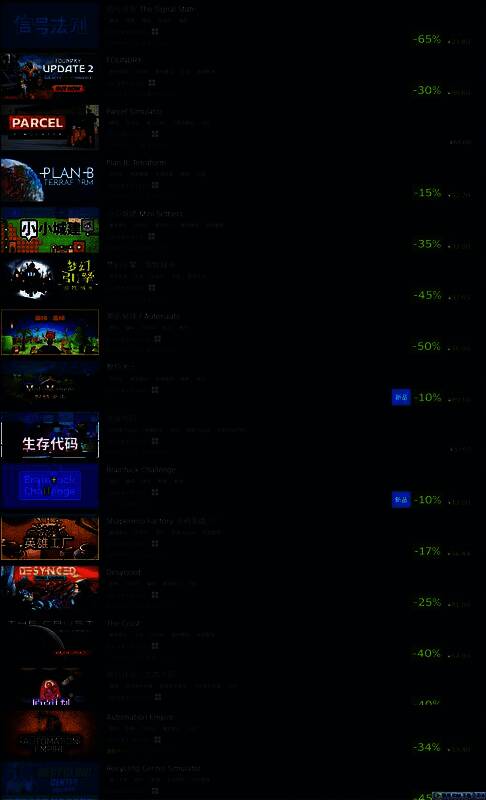 《戴森球计划》、《幸福工厂》等游戏参与了此次促销,但好评如潮的2D生产建设模拟游戏《异星工厂》虽然参加,但保持了原价,依旧是130元。