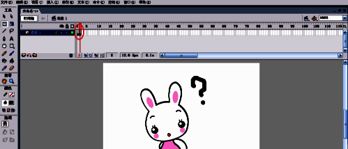 在第二帧,选择任意变形工具,再点击问号,把它旋转一点的角度。