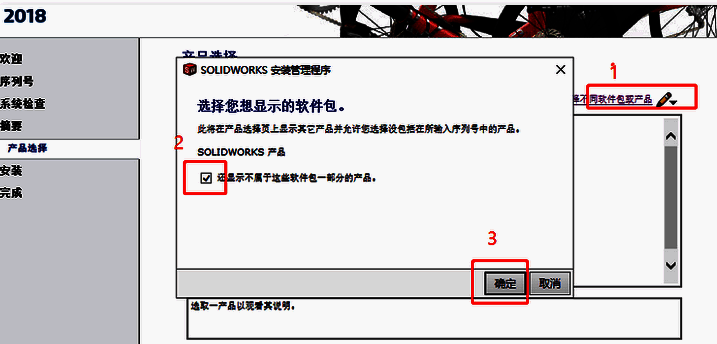 9、点击更改之后出现弹窗,点击选择不同软件包或产品-勾选弹窗,点击确定。