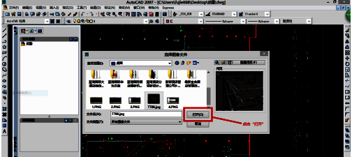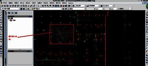 用鼠标左键在Cad中选择图片需要插入的位置:当确定了图片加载的位置后,点击鼠标左键确定,如图红框的位置。