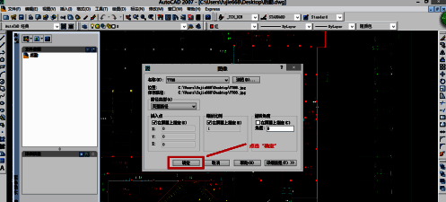 出现“图像”菜单后,点击“确定”:当出现“图像”菜单后,点击“确定”,此时图片开始加载到cad软件中,等待确认图片插入到Cad的具体位置。