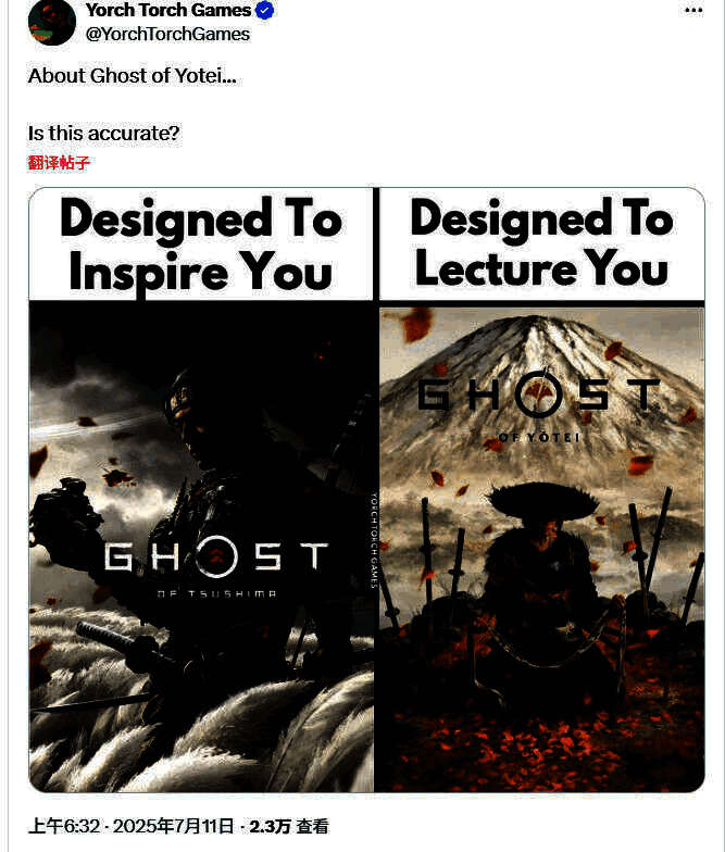 以男性为主角的《对马岛之鬼》给人以启发,而《羊蹄山之魂》只是一个说教游戏