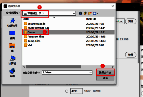第七步:选择安装文件夹, 这里以选择D盘下Game文件夹为例。