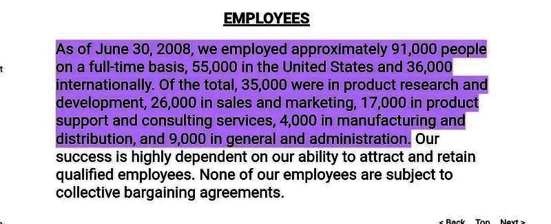 微软在2008年拥有全职员工约91,000人(美国55,000人,海外36,000人)。索尼同期员工数约为180,000人。而截至2024年底,索尼目前员工数约为113,000人,这意味着其自2008年以来累计裁员高达67,000人。而微软2024年员工数约为228,000人,较2008年净增约137,000人。