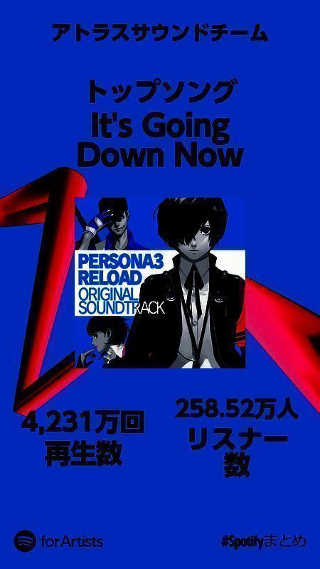 在这三部作品推出后,ATLUS Sound Team也陆续将它们的完整原声音乐专辑上线Spotify等主流平台,其中以《女神异闻录3:Reload》的原声专辑表现最为亮眼。尤其是其中的战斗主题曲《It’s Going Down Now》,目前在Spotify上的播放量已突破1亿次,是去年的4200万次的两倍还多。