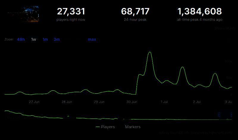 现在玩家在Steam平台早已因首发时的优化产生不满评,后续更新慢,bug多等等各种骚操作,使《怪物猎人:荒野》差评如潮,差点赶超《三国杀》,甚至有的玩家已经不认可《怪物猎人:荒野》为最新作,相比较该作刚出时的盛况,现在在线人数仅为全盛时期的5%。