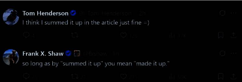 该回应并非明确的否认,但微软公关主管弗兰克・肖(Frank Shaw)暗示传言是捏造的。他对外媒Insider Gaming总结的传言做出尖锐回应,“如果你们说的‘总结’是‘胡编乱造’的意思,那确实如此。”