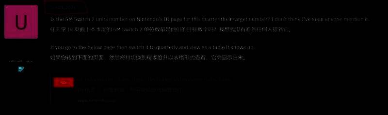 任天堂官网意外泄露的数据显示,Switch2首季度销量可能达到500万台。但消息源存疑,该数字更可能是内部预测而非实际销售结果。