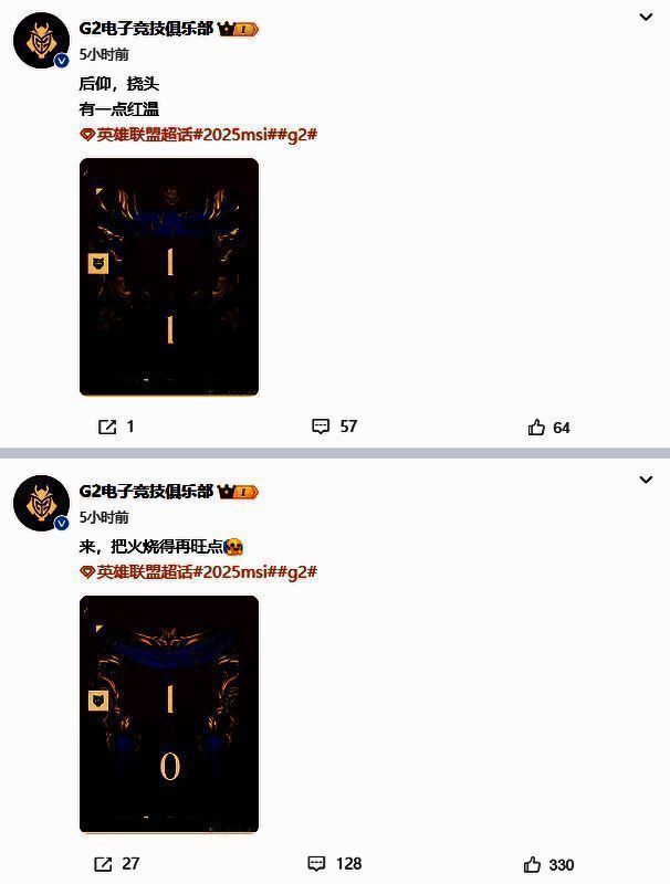 值得一提的是,G2官方仍在整活,其“心动历程”让人忍俊不禁,从“把火烧得再旺点”到”红温团团转,听不到战歌“,心态这块至少拿下了,希望后续还能为我们带来更多精彩的比赛吧!
