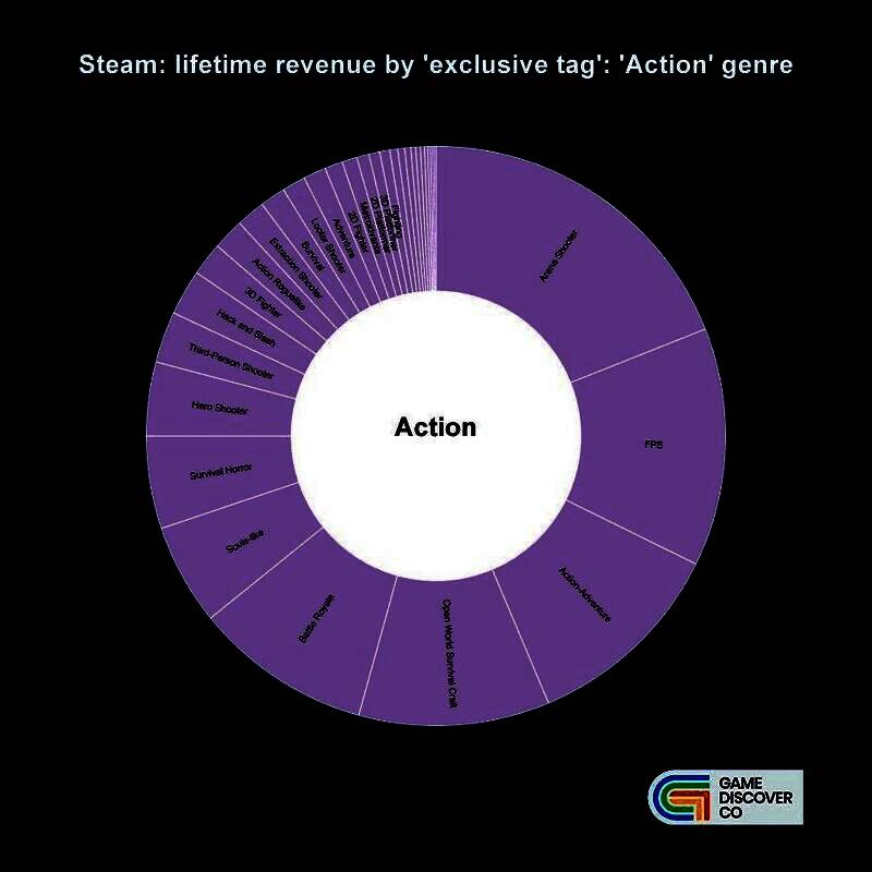 动作游戏以58.37%的绝对优势成为Steam最吸金类型