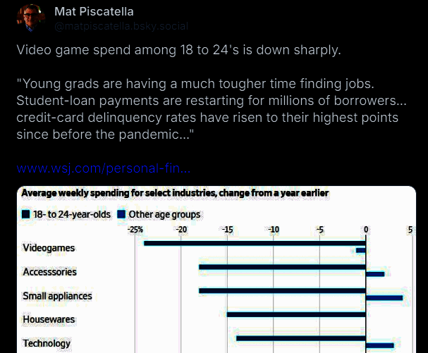 据外媒报道,来自市场调查公司Circana发布的最新数据显示, 美国18~24岁年轻玩家游戏支出较去年同期减少25%。