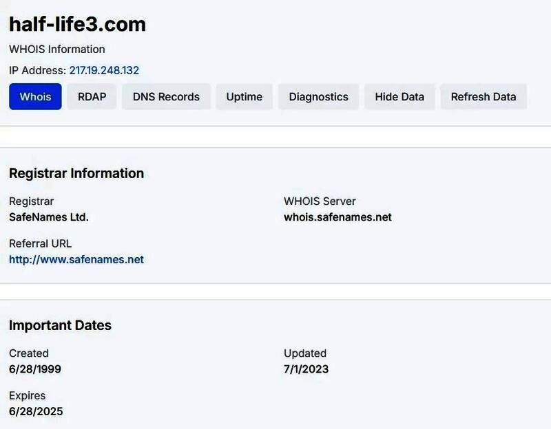 知名数据挖掘者Gabe Follower指出,该域名注册于1999年,曾一度跳转至《橙盒》(The Orange Box)的宣传页面。随着到期日临近,眼尖的粉丝发现V社迟迟未续费,紧急在Reddit论坛发起呼吁。据最新消息,V社最终在截止日期前低调完成了续费。