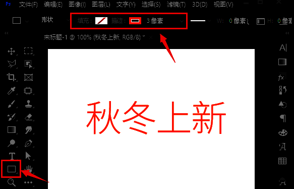 2.然后,点击矩形工具,添加一个无填充、橙色描边、3像素大小的矩形边框