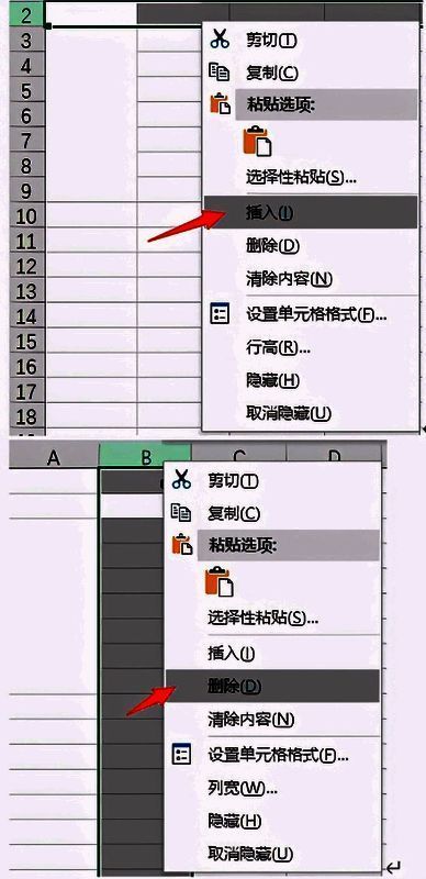 其中插入是在横行之上,竖列之左进行插入行列,删除是删除当前选定的行列。
