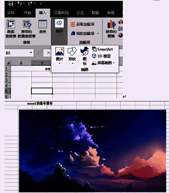 l 插入菜单中最常用的就是图片,与word一样,插入-图片-选择想要插入的图片,图片就会在表格中呈现。