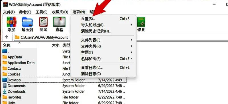 在WinRAR的主界面中,找到菜单栏,通常位于界面的顶部。点击菜单栏中的“选项”菜单。